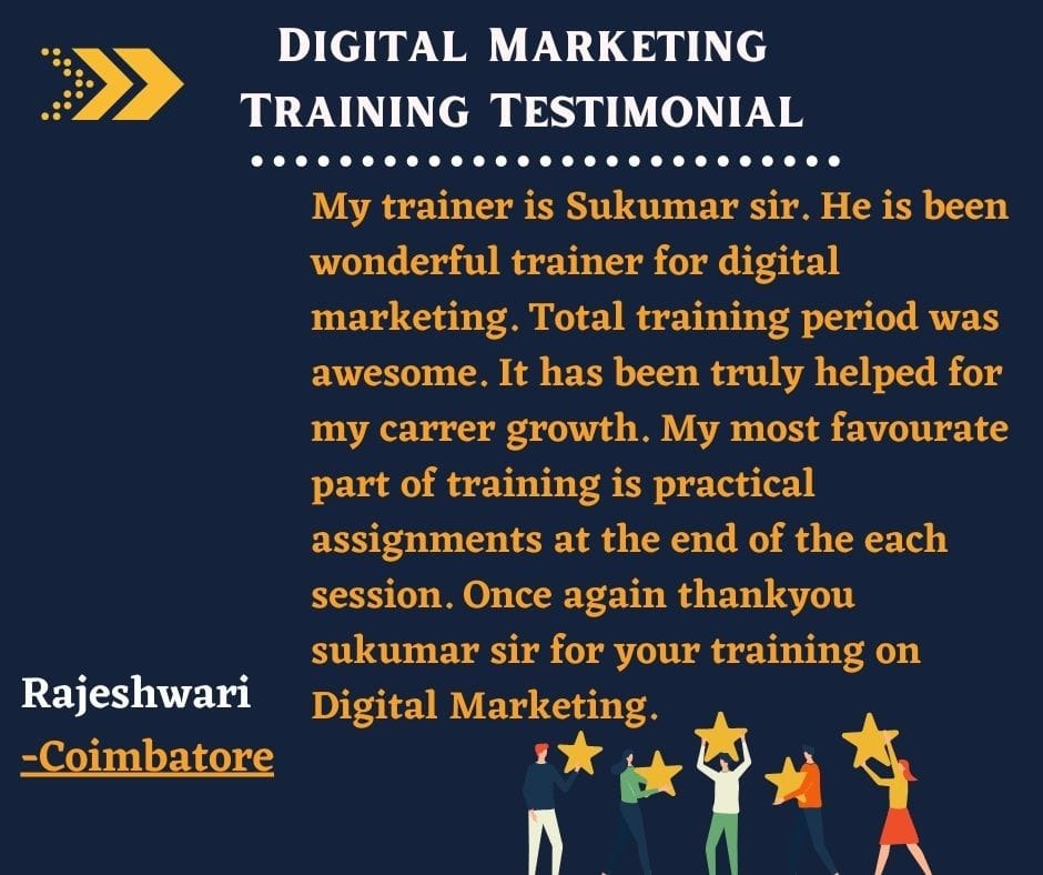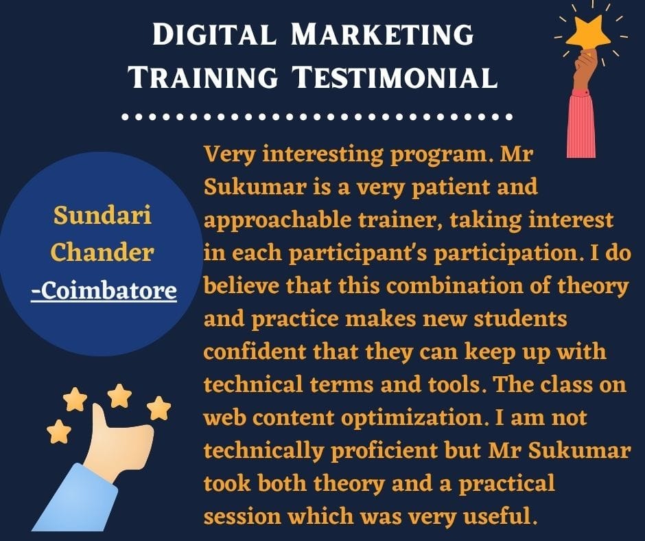 Thanks to Digitalcollege.codigitalcollege.co and Sukumar Sir, I could work on the email marketing strategies and help revive my blogging site.
